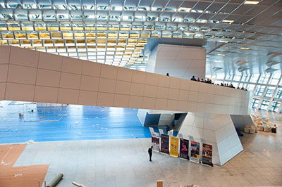 大连国际会议中心,凭借其打破传统的建筑造型和极具张力的建筑语言从设计之初便吸引了无数业界人士的关注,经过四年的合作设计与艰苦的施工过程,2013年夏季达沃斯论坛在大连国际会议中心顺利召开。2014年2月22号,UED建筑品谈:大连国际会议中心建筑作品研讨会顺利召开,众多政府领导、知名建筑师及专家学者莅临现场,真正走进会议中心,亲身体验其空间体量,阅读它所表达的建筑语言。