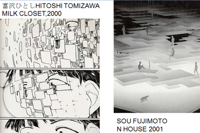 第三部分,五十岚先生介绍了现今日本新提出的"超平"的概念以及"等级的解体"和"没有透视法的世界"等理念,以及在这些理念下的建筑风格和建筑师和建筑事务所工作风格等。